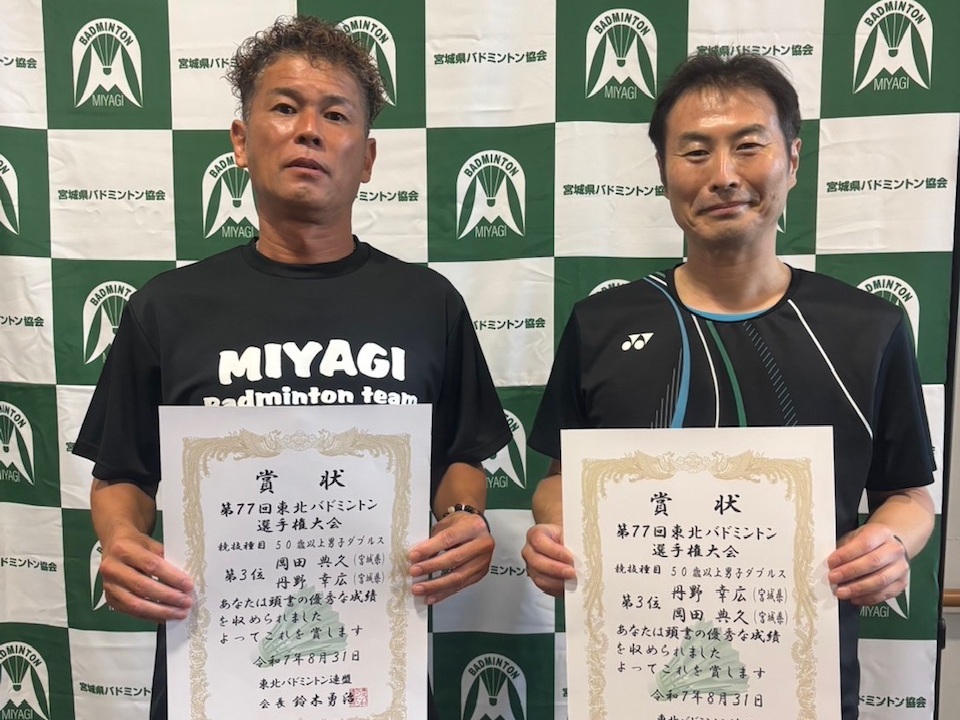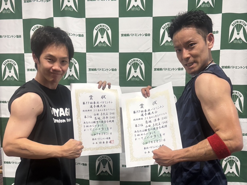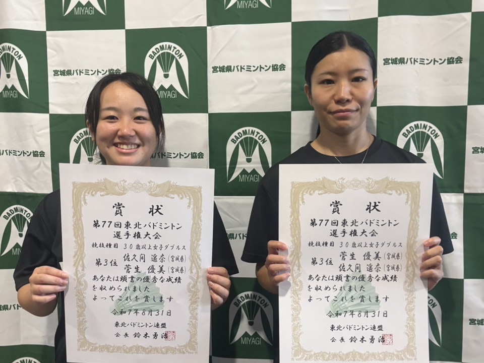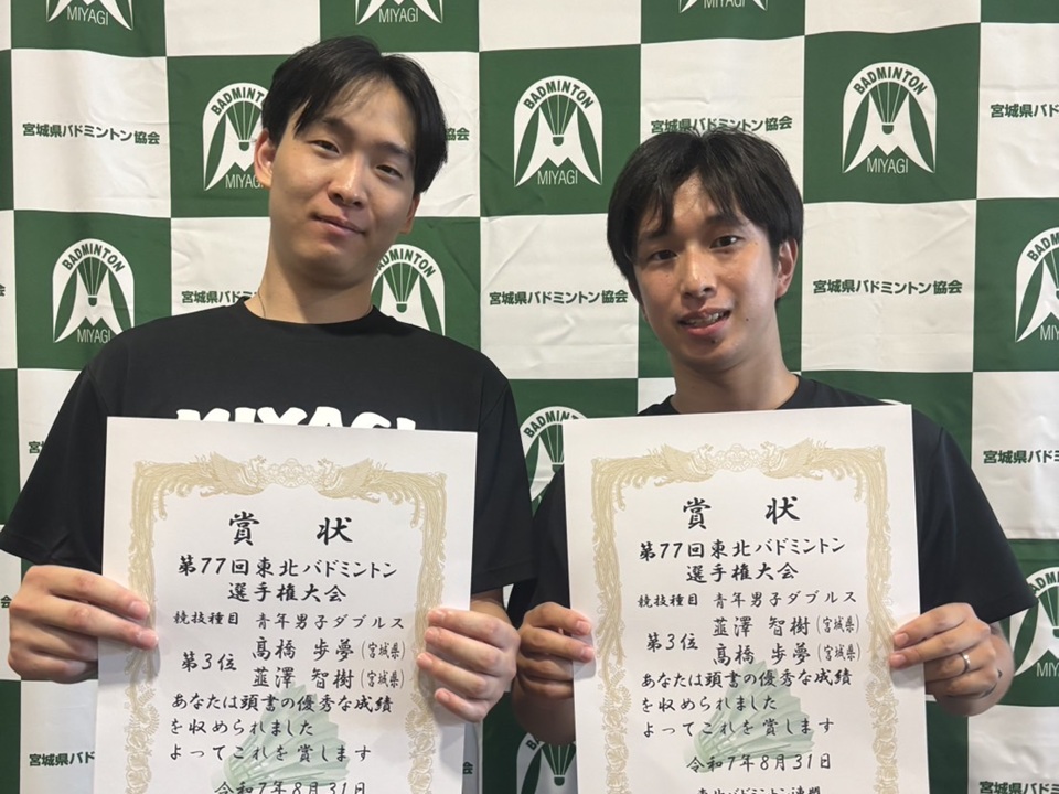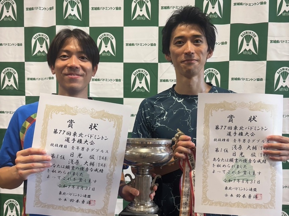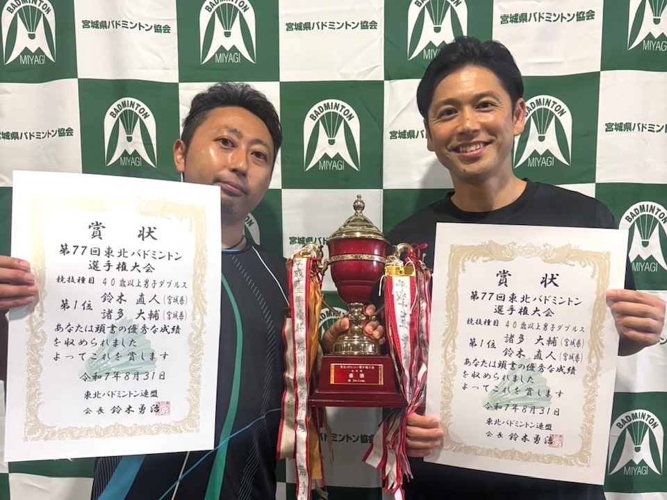 兼 第77回 東北バドミントン選手権大会選手選考会」(2025.07.05〜2025.07.06) 「第77回 宮城県バドミントン選手権大会(一般)」(2025.04.26〜2025.04.27)